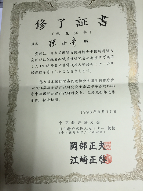 中日特許代理人修業(yè)證